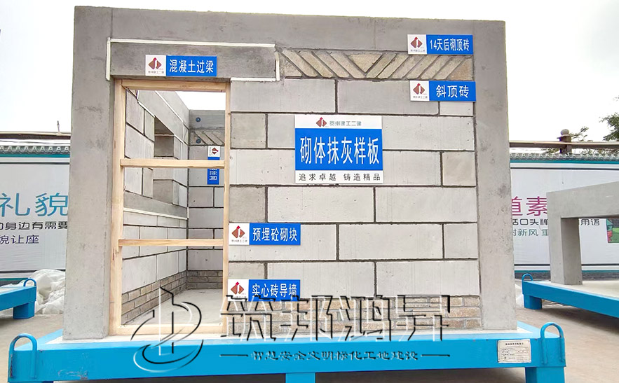 [筑邦鴻昇]砌體抹灰樣板,施工工藝工法質(zhì)量樣板是根據(jù)施工單位的要求和標(biāo)準(zhǔn)制作,展示其在本工程所采用的材料及其質(zhì)量、施工工藝、施工流程、技術(shù)水平及施工質(zhì)量。砌體抹灰樣板,不僅是展示施工工藝、明確施工質(zhì)量、展現(xiàn)施工流程、探索施工技術(shù)的一種有效手段,也是向外界展示工程品質(zhì)和企業(yè)形象的廣告牌。