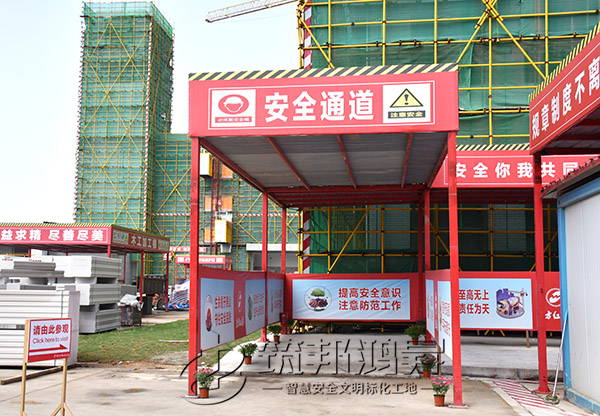 安全通道,施工現(xiàn)場(chǎng)實(shí)行人車分流,主要人員出入通道搭設(shè)了專用安全通道,安全通道兩側(cè)設(shè)置宣傳欄,提升施工作業(yè)人員的質(zhì)量意識(shí)、安全意識(shí)。