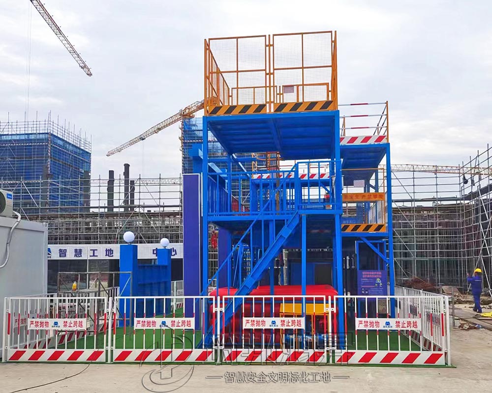 該綜合體搭建三層,整體大氣美觀,各類體驗(yàn)設(shè)備組合可定制,第一層設(shè)置了安全防護(hù)用品體驗(yàn),安全急救體驗(yàn),安全著裝展示,滅火器演示體驗(yàn),綜合用電體驗(yàn),安全帽撞擊體驗(yàn),機(jī)械傷害體驗(yàn),安全帶體驗(yàn),洞口墜落體驗(yàn),第二層設(shè)置了平衡木體驗(yàn),垂直爬梯體驗(yàn),各類臨邊護(hù)欄展示,施工電梯防護(hù)門展示,卸料平臺(tái)展示。第三層通過(guò)爬梯體驗(yàn)上去,設(shè)置了工地護(hù)欄和塔吊護(hù)欄展示。