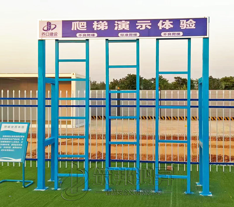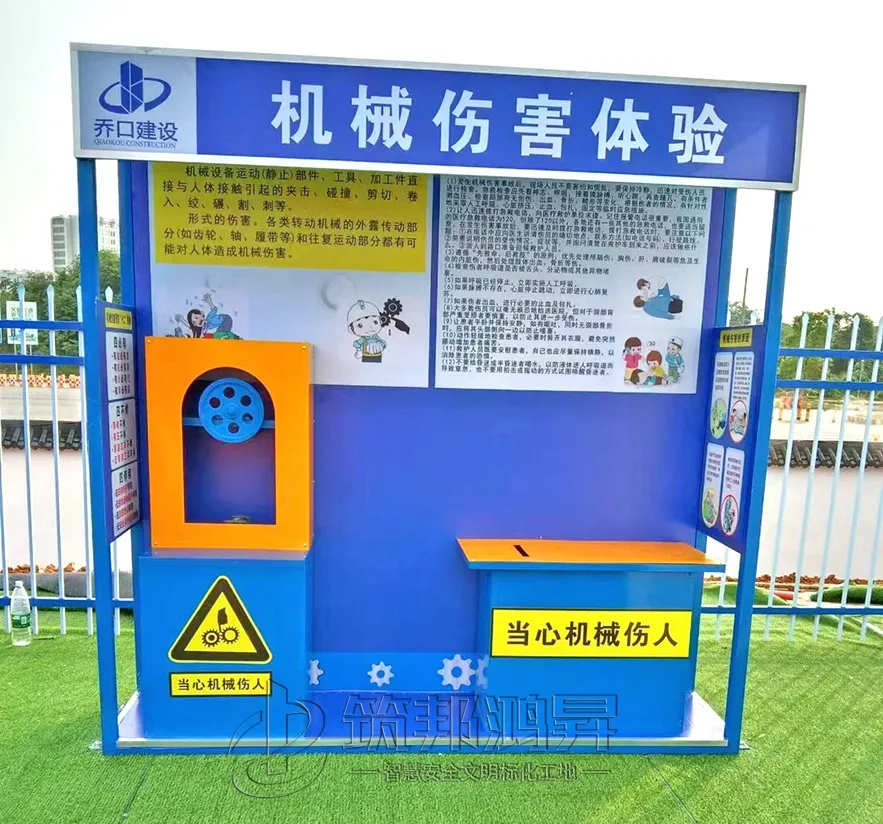 此次合作的工地安全體驗(yàn)區(qū)建設(shè)包括了班前講評(píng)臺(tái)、爬梯演示體驗(yàn)、洞口墜落體驗(yàn)、消防器材柜、滅火器演示體驗(yàn)等。