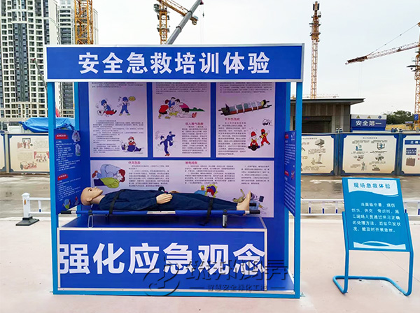 此次合作的安全教育培訓(xùn)體驗(yàn)區(qū)建設(shè)包括了電焊機(jī)操作體驗(yàn)、安全急救培訓(xùn)體驗(yàn)、安全帶使用體驗(yàn)、平衡木體驗(yàn)、鋼絲繩使用體驗(yàn)、欄桿推倒體驗(yàn)、洞口墜落體驗(yàn)、重物搬運(yùn)體驗(yàn)、綜合用電體驗(yàn)、滅火器演示體驗(yàn)、安全防護(hù)用品展示體驗(yàn)、安全帽撞擊體驗(yàn)等。筑邦安排專車送貨到廈門工地,同時安排了專業(yè)人手迅速到工地加班加點(diǎn)完成安裝。