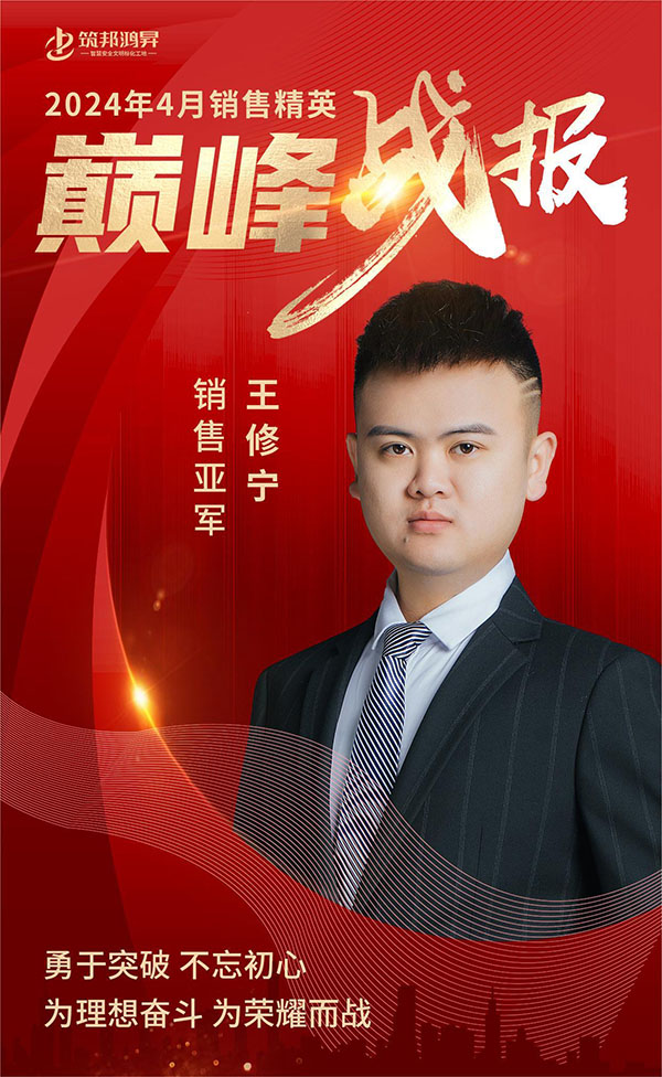 4月份,筑邦鴻昇又迎來了一場銷售的盛宴,我們的銷售團(tuán)隊(duì)在過去的4月份再次創(chuàng)造了輝煌,讓我們一同為銷售部精英取得的杰出成績喝彩。值此良機(jī),我們向大家介紹我們銷售部4月銷售業(yè)界的前三甲——冠軍康納輝、亞軍王修寧和季軍康治輝,他們的奮斗和成就展示了我們企業(yè)全心全意服務(wù)客戶的承諾和精神,同時也是我們?nèi)w銷售部成員的榜樣和鼓舞!