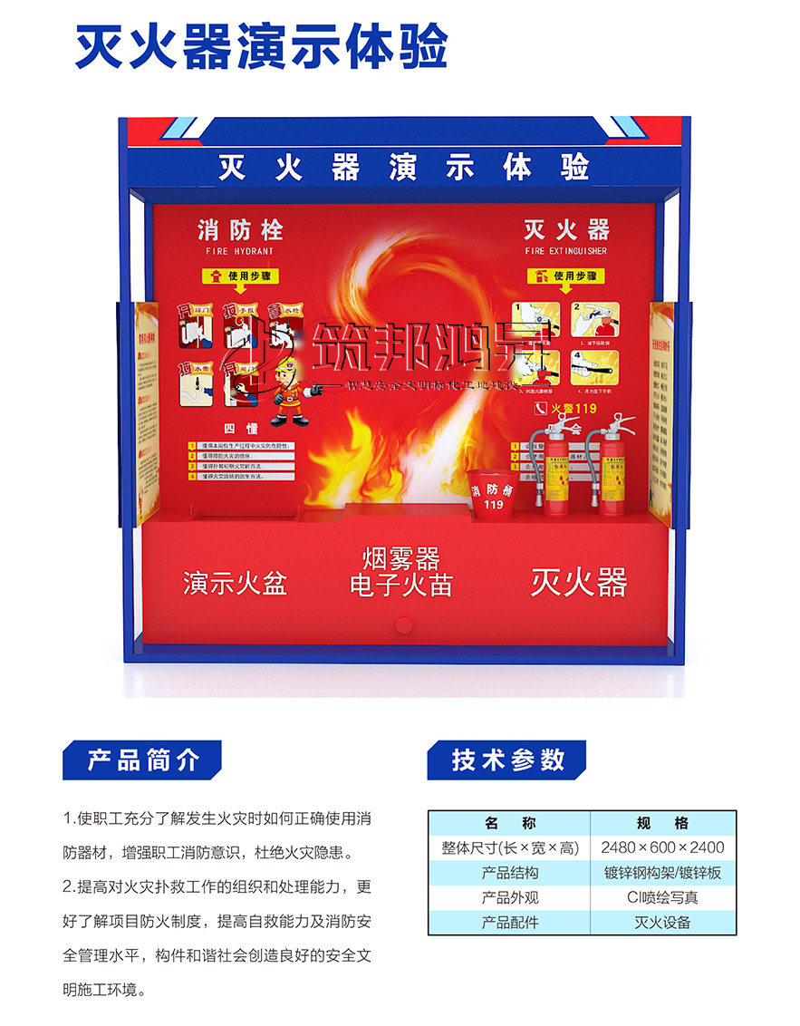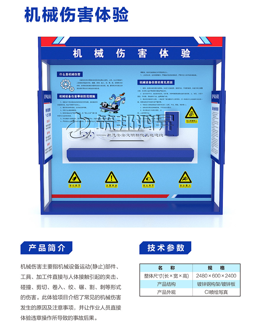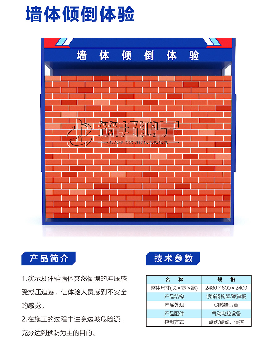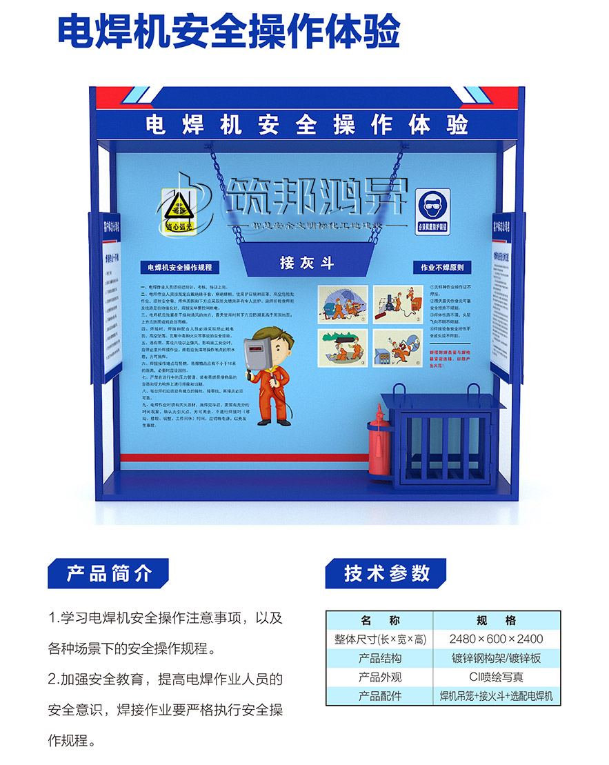【筑邦鴻昇】實(shí)體安全體驗(yàn)館采用視、聽(tīng)、體驗(yàn)相結(jié)合的立體式安全教育模式,實(shí)施可感受、可操作的實(shí)體化安全教育。安全體驗(yàn)館通過(guò)模擬建筑施工現(xiàn)場(chǎng)可能發(fā)生的各種安全事故,讓體驗(yàn)者親身參與、體驗(yàn),寓教于樂(lè),體驗(yàn)不安全操作行為帶來(lái)的危害,讓每個(gè)員工都有實(shí)際操作的動(dòng)手能力,真正達(dá)到“以人為本預(yù)防為主”為目的的場(chǎng)館。通過(guò)體驗(yàn),讓體驗(yàn)者熟練掌握安全操作規(guī)程以及緊急情況的安全對(duì)策,達(dá)到提升職業(yè)技能、提高安全意識(shí)的目的。實(shí)體體驗(yàn)館有(常規(guī)款+鈑金款+經(jīng)濟(jì)款),下面展示的是經(jīng)濟(jì)款。
