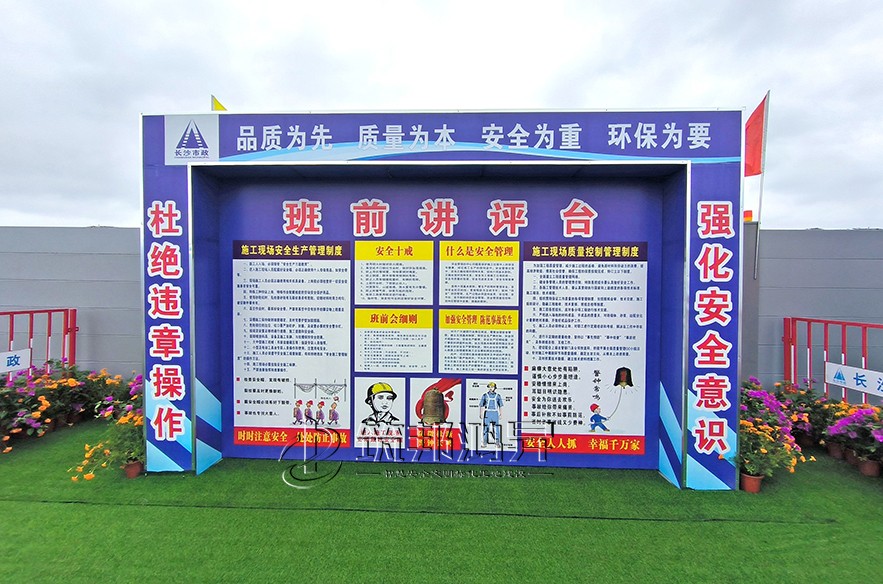 6月21日,2022年長(zhǎng)沙市建筑工程質(zhì)量管理和安全生產(chǎn)標(biāo)準(zhǔn)化觀摩會(huì)在長(zhǎng)沙市市政工程承辦的靳江河西岸綜合整治工程設(shè)計(jì)施工總承包(EPC)項(xiàng)目舉行。筑邦鴻昇系列文明標(biāo)化產(chǎn)品助力。